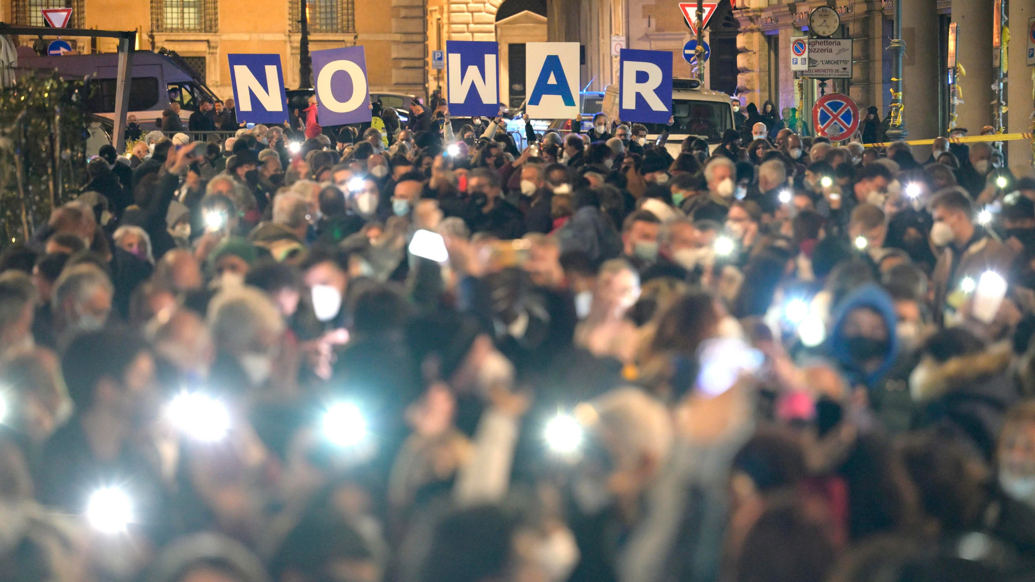 E’ scritto sullo striscione appeso sul palco, il sindaco Roberto Gualtieri, che ha ricordato la vocazione alla pace della città di Roma, aggiungendo poi che “a questi venti di guerra dobbiamo rispondere con le parole di Papa Francesco, del presidente Mattarella, c’è sempre la soluzione della politica e della diplomazia. Roma manda un messaggio universale di pace e di cooperazione tra i popoli”