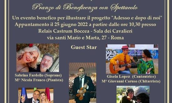 Il primo di questi eventi è il “Premio Fori Imperiali 2022” che si terrà a Roma il giorno 25 giugno 2022 presso il Relais Castrum Boccea via santi Mario e Marta, 27 , dimora storica del periodo medievale situata a mezz’ora dal centro di Roma, dalle ore 10:30 presso la Sala dei Cavalieri, luogo in cui si terrà, dunque, la cerimonia di premiazione e pranzo con spettacolo e l’incontro sul tema “Adesso e dopo di noi”.
