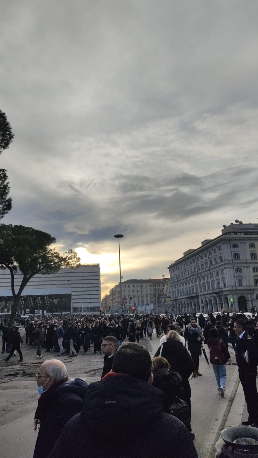 Metro A guasta e migliaia di viaggiatori lanciati verso la stazione Termini in cerca di mezzi sostitutivi che non arrivano, polizia locale assente, carabinieri in strada nel tentativo di arginare il traffico.