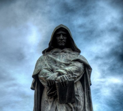 Il 17 febbraio dell’ Anno Santo 1600 moriva sul rogo a Campo de’ Fiori, a Roma, il frate Domenicano Giordano Bruno, per non aver voluto abiurare alle sue teorie note in Italia e in Europa. Il fuoco uccide l’uomo ma non il suo pensiero, la sua concezione di una nuova filosofia non era né scientifica, né rigorosamente religiosa, in quanto si erigeva sulla magia naturale insita nel concetto di armonia universale .Bruno usa una specie di estensione trascendentale della nozione di magia ritenuta affine e contenuta nell’intelletto, persuaso che si possano demolire le barriere tra l’umano e il divino. La verità e la conoscenza sono gli strumenti per arrivare alla consapevolezza che l’Uomo, Dio e la Natura sono i diversi aspetti di una sola entità correlata. “tutte le cose sono nell’universo e l’universo è in tutte le cose…in questo modo tutte le cose si armonizzano in una perfetta armonia”.