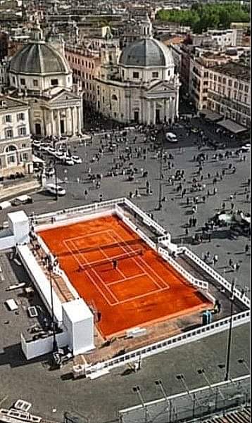 È stato allestito al centro della splendida piazza un campo da tennis in terra battuta dove si terranno le partite di pre qualificazione maschili e femminili degli Internazionali d’Italia e dove, udite udite: ci sarà una esibizione pazzesca di Berrettini e Sinner (non è ancora certo che ci saranno entrambi o uno dei due azzurri, speriamo vivamente ci siano tutti e due!)