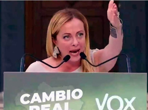 Giorgia Meloni è apparsa sul grande schermo della chermes del movimento politico spagnolo vox, ed in Italia la sinistra ulula alla luna ,come lupi famelici, i commenti sono addirittura imbarazzanti da parte di questi sopravvissuti ad una sinistra che non riesce a trovare il bandolo della matassa.