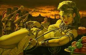 .Detto fatto, la legione di donne della felice vita romana accettò il duello e, conoscendo la leggendaria fama della rivale, scelsero di rappresentarle niente meno che la siciliana Scilla, una vera “mangiatrice di uomini” che seminò il terrore quella Roma ribalda e lussuriosa.