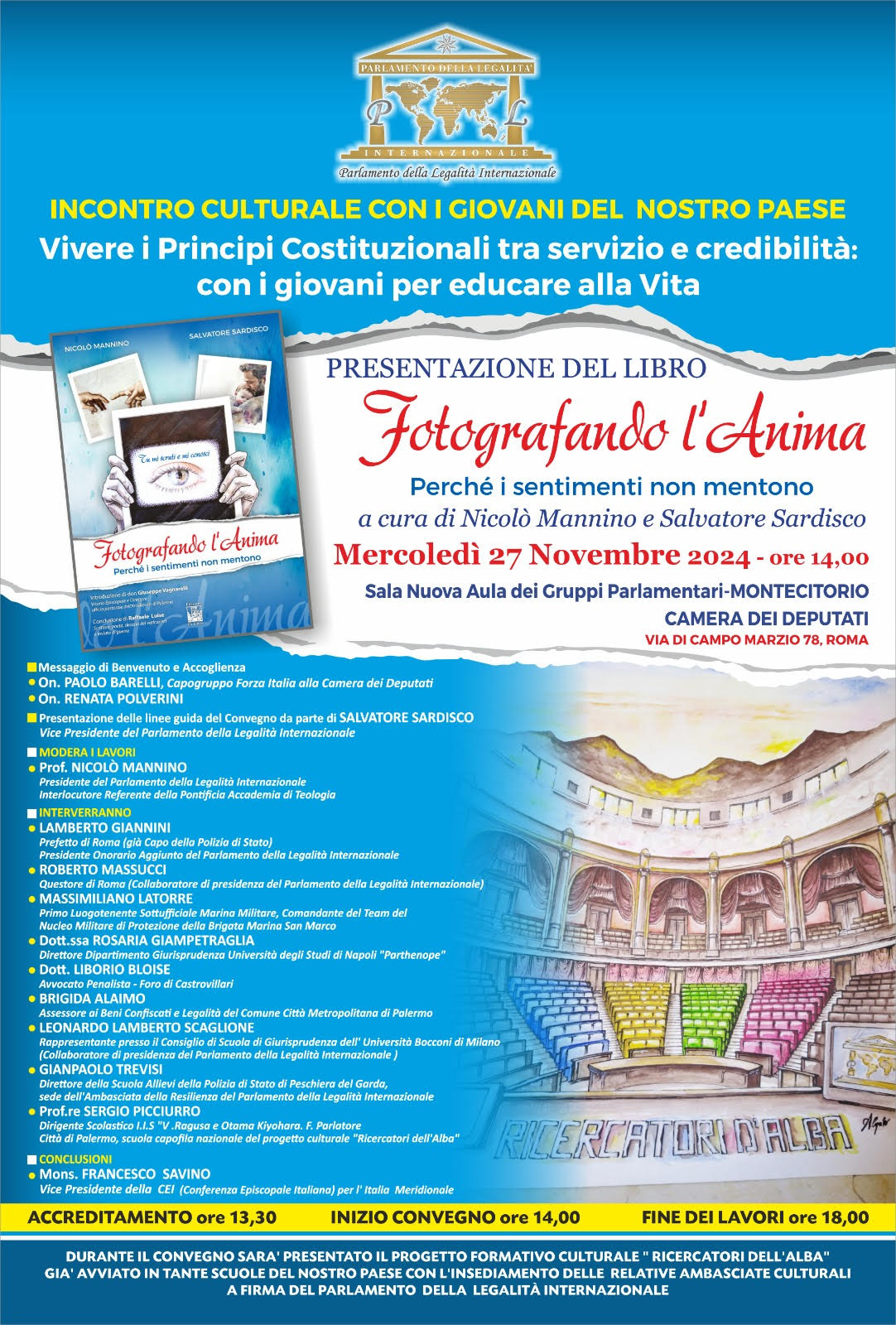 Un evento senza precedenti e significativo avrà luogo mercoledì, 27 novembre, al Parlamento italiano. Dopo aver organizzato in Vaticano l’interessante conferenza incentrata su solidarietà, legalità e pace, è stato il turno del Parlamento della Legalità Internazionale di farsi promotore dell’evento “Vivere i Principi Costituzionali tra servizio e credibilità: con i giovani per educare alla Vita “nelle premesse del legislatore italiano.