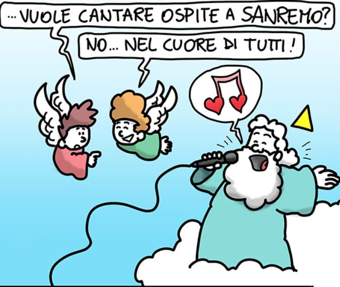 Da più di 2000 anni, ogni domenica, uno dei più grandi cantanti che la storia abbia mai avuto, per bocca di tanti operai della sua messe, canta la canzone più bella che orecchio d’uomo abbia mai ascoltato: canta l’amore. Lo canta in tutte le lingue conosciute e non, e per farlo non è sceso da una scalinata infiorata, ma è salito sul palcoscenico più alto che esista: la Croce.