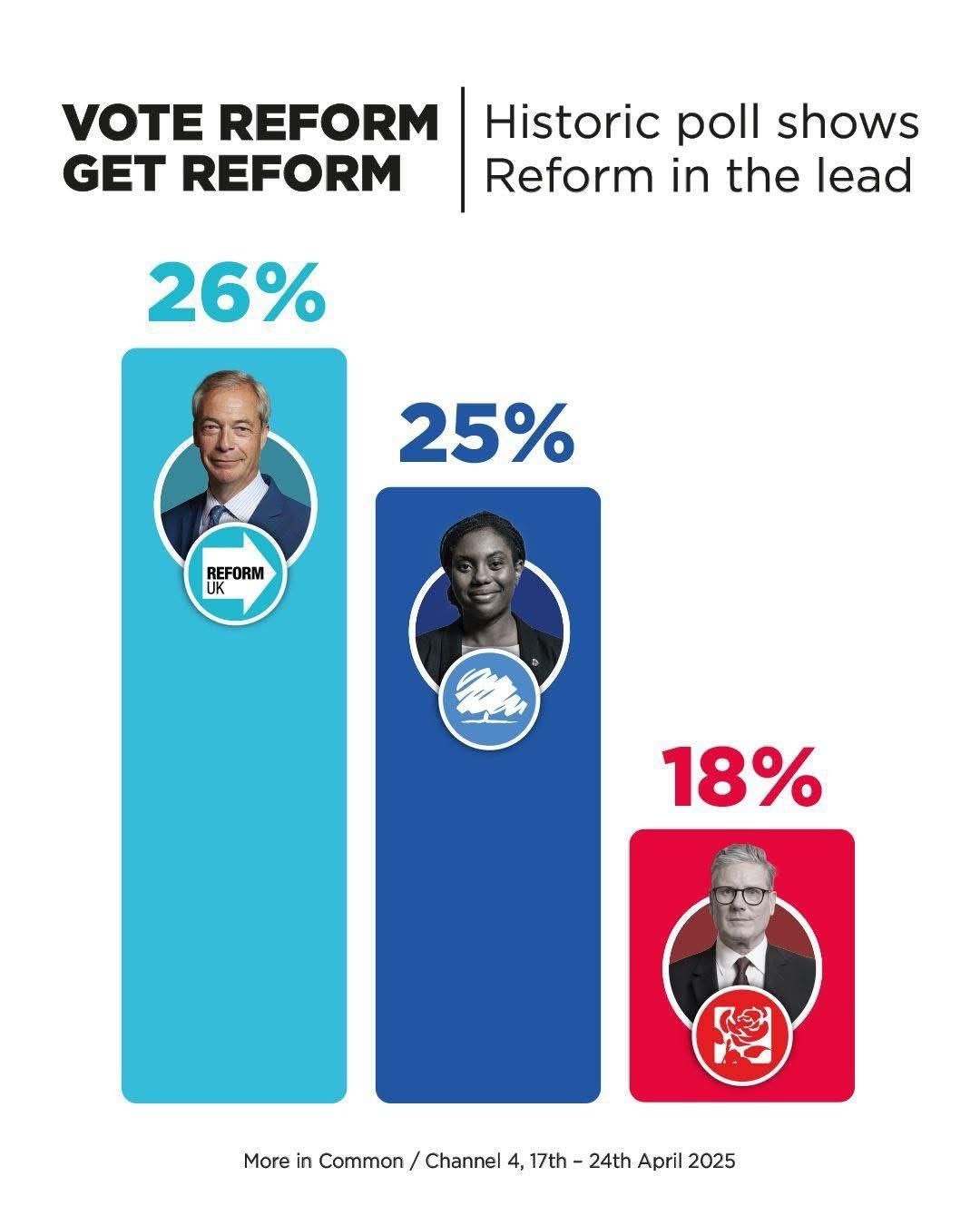 Il Reform Party è in testa a tutti i sondaggi e continua a crescere mentre il guerrafondaio e progressista Starmer è ai minimi.