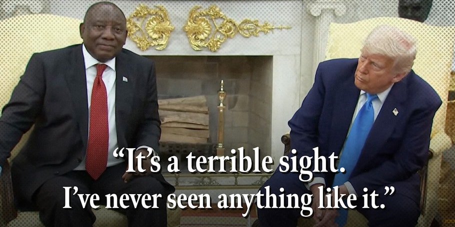 Trump, il cui gusto per il drammatico ha rivoluzionato il concetto stesso di conferenza stampa alla Casa Bianca, un tempo soporifera, ha poi ordinato di abbassare le luci nello Studio Ovale, in stile teatro, per mostrare un inquietante video di cinque minuti di incitamento politico e crimini contro gli afrikaner.