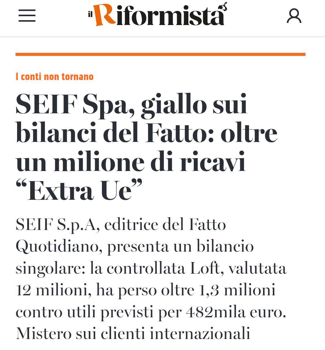 Seif Spa la società editrice del ” Fatto Quotidiano”, presenta un bilancio singolare, la controllata Loft, valutata circa 12 milioni di euro, presenta una perdita di 1, 3 milioni di Euro.