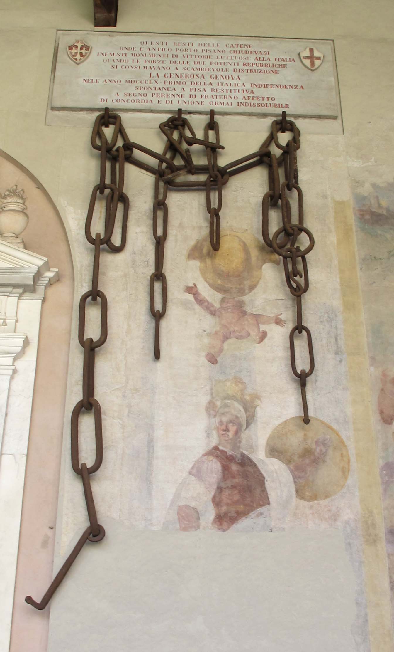 A suggello della vittoria, Genova portò via le catene che chiudevano il porto di Pisa. Quelle stesse catene, simbolo di difesa e orgoglio cittadino, furono esposte come trofeo a Genova e ancora oggi ornano la Cattedrale di San Lorenzo. Si trattò di un gesto altamente simbolico, capace di sancire non solo la sconfitta militare, ma anche l’umiliazione morale della rivale.