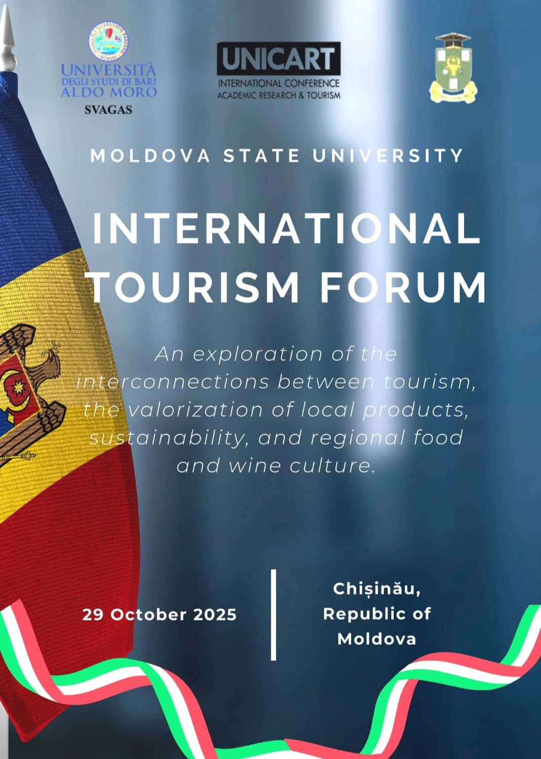 Il mese di ottobre sta arrivando e con esso un atteso evento che promette di essere un crocevia di idee, innovazioni e collaborazioni: il forum internazionale “An exploration of the interconnections between tourism, the valorization of local products, sustainability, and regional food and wine culture”, che si terrà il 29 ottobre all’Università di Stato di Chisinau, Moldova.
