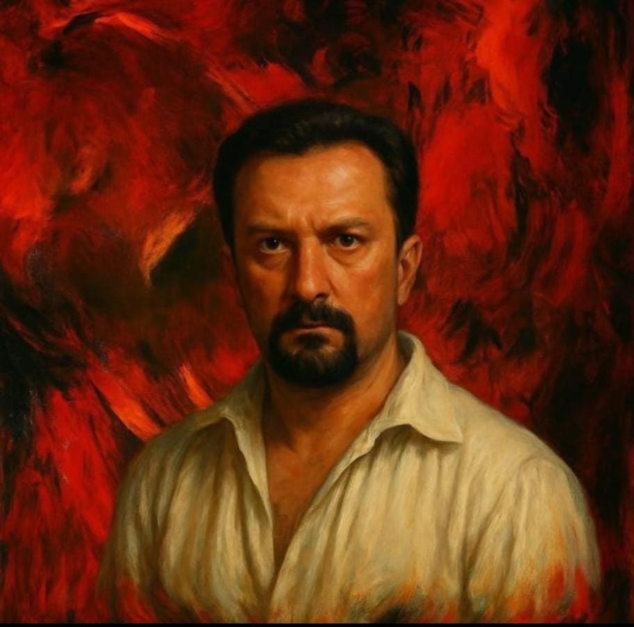 Nel suo atelier nel quartiere Sallustiano, un pittore lavora in silenzio davanti a un vortice di colori rosso e nero.