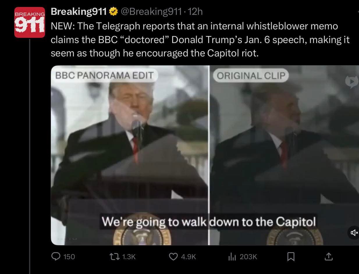 La BBC, nota per la sua obiettività (o almeno così si dice), decide di prendere il video del discorso di Trump e di “ri-elaborarlo”. Sì, perché qualunque cosa possa dire l’ex presidente, non può competere con le abilità di editing video di una redazione ben pagata. Quindi, in un colpo di genio (o di follia), quel video viene manipolato e, voilà!, finisce per raccontare una storia completamente diversa. Un racconto distorto che, sorprendentemente, diventa virale.